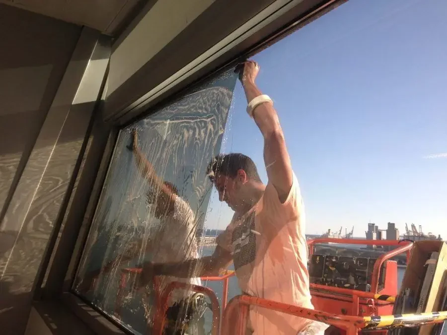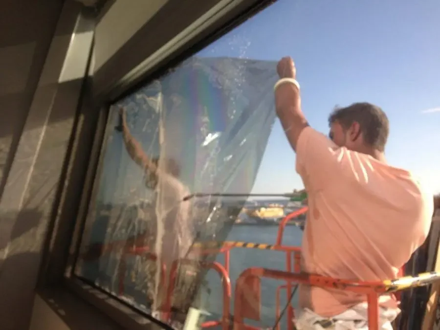 Instalación de lámina solar Prestige 40 Exterior de 3M para reducción de temperatura interior y deslumbramiento.