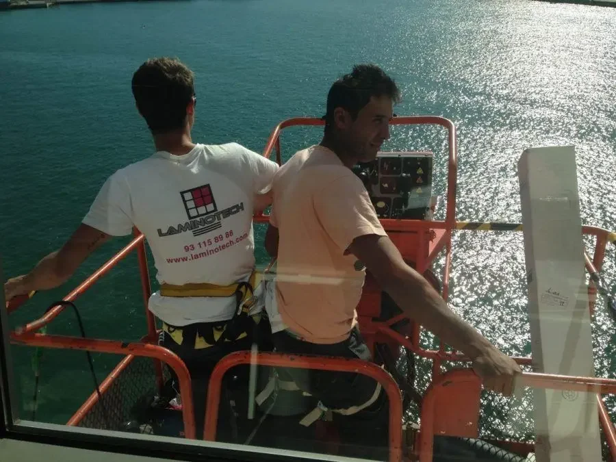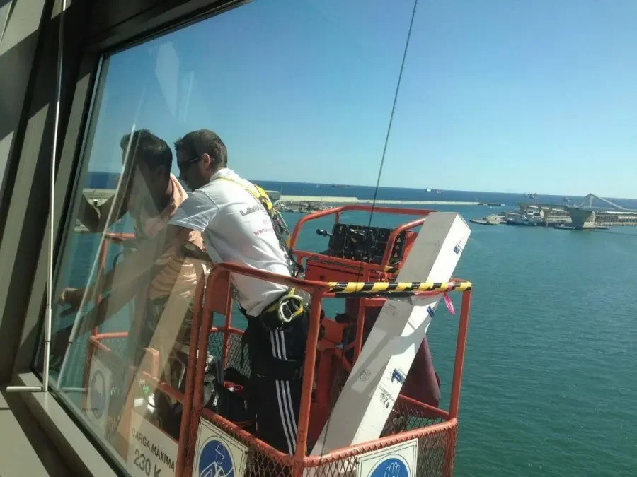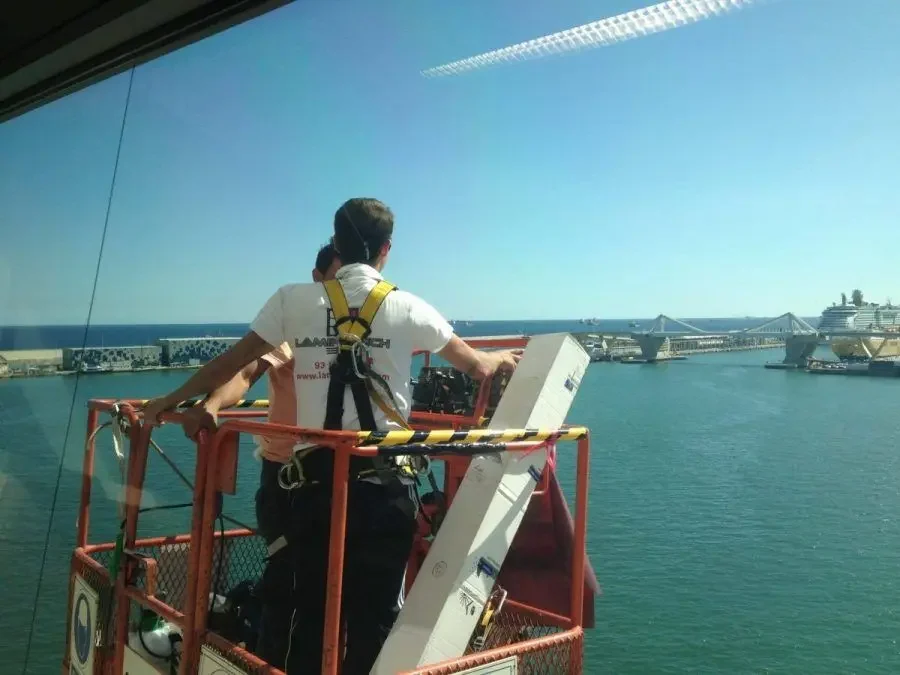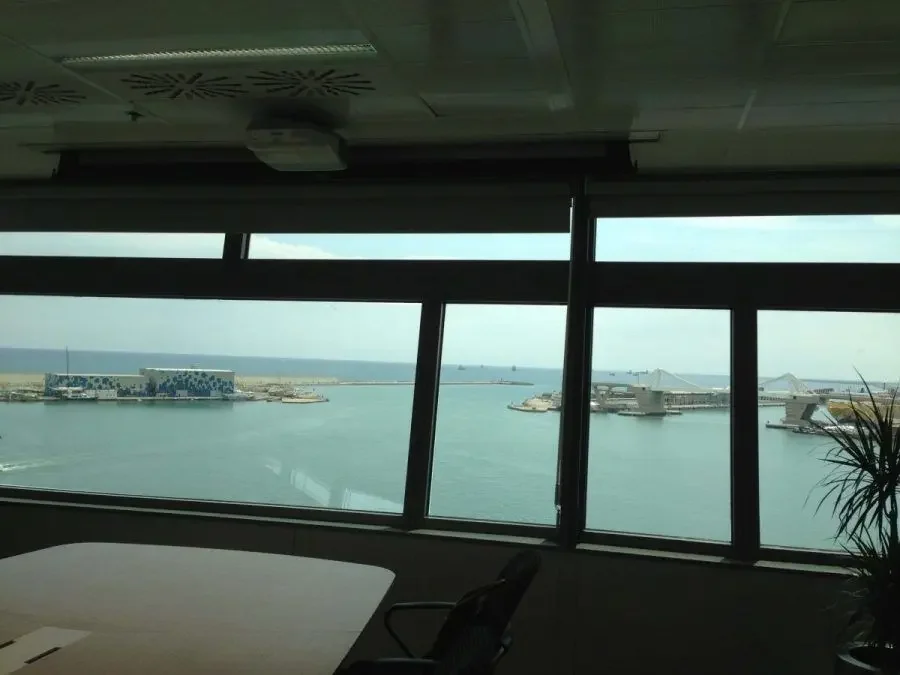 El cliente nos contrató para resolver el problema del calentamiento y deslumbramiento que sufría en su edificio. Este problema, además, se agudizaba debido a estar emplazado sobre el mismo muelle de Barcelona. Ello impedía su aislamiento del sol y los reflejos solares sobre el mar producían un fuerte deslumbramiento a ciertas horas del día. Evidentemente esto es un grave problema para el devenir normal de unas oficinas.