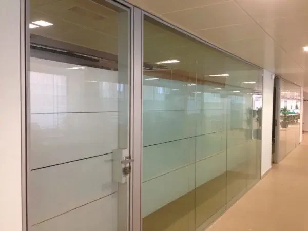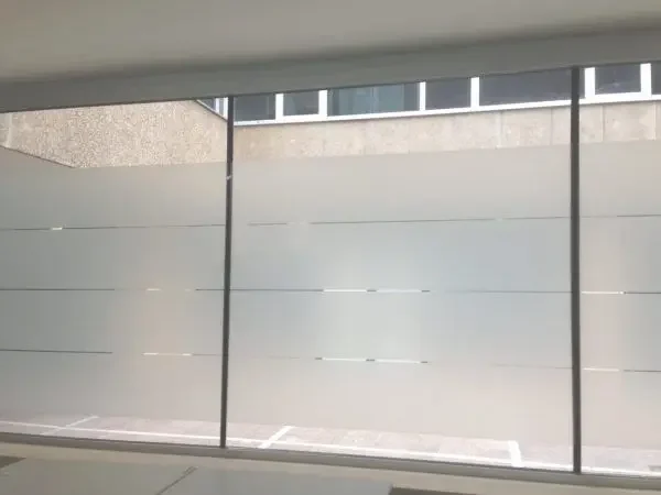 Este es un trabajo de colocación de Láminas de Privacidad a Franjas. Ha sido realizado para una empresa que dispone de una organización de despachos a base de mamparas divisorias, con varias instancias acristaladas. El continuo paso de personas impedía la privacidad y concentración de los distintos despachos y salas. Es por ello que se encargó la colocación de Láminas de Privacidad a Franjas y Vinilos de Privacidad de Corte a Franjas parcial para mamparas. La idea era crear una división o separación de espacios, de forma que diera la sensación de estar más aislados, facilitando así la privacidad en las reuniones de trabajo.