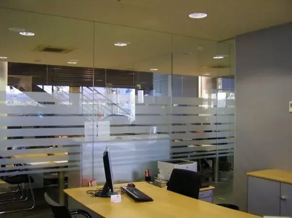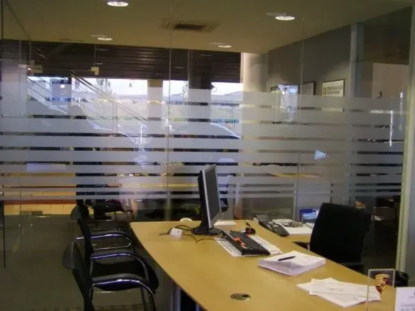 Inicialmente, el cliente necesitaba guardar privacidad entre la zona pública y la zona de oficinas y entrevistas. Por eso los vinilos de privacidad resultaron una opción de separación de espacios muy apropiada para mamparas acristaladas en oficinas y locales. Además, su doble función de privacidad y decorativa tiene mucho auge actualmente.