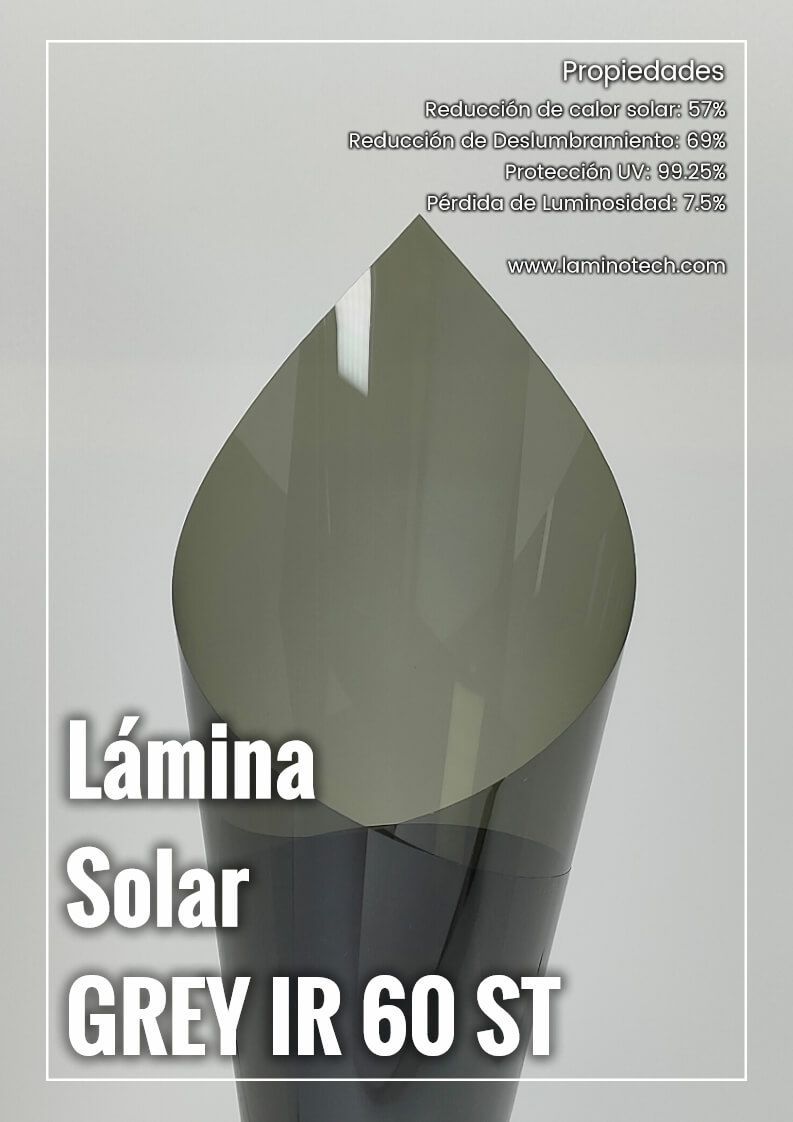 La lámina solar Grey IR 60 ST es una lámina técnicamente superior en prestaciones anti-UV, rechazo de calor IR y deslumbramiento.
