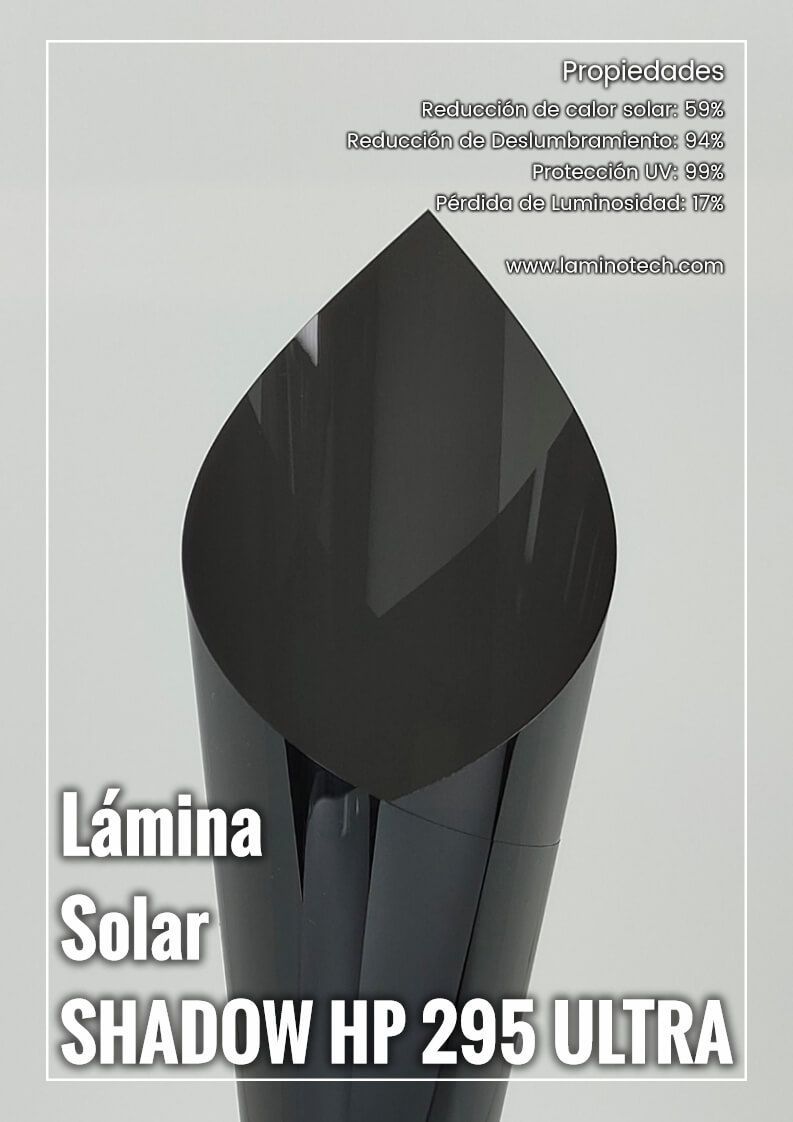 La lámina solar Shadow HP 295 Ultra es una lámina premium HP de intensidad muy fuerte, que permite una moderada transmisión de luz y fuerte rechazo solar del 59%.
