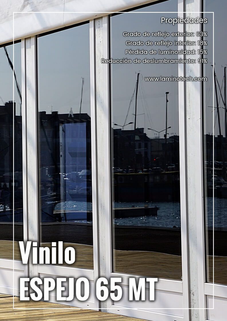 Este vinilo Espejo 65 MT pertenece a la gama de láminas duales, espejadas por exterior y tintadas por interior. Muy adecuado para conferir privacidad diurna total, y cierta privacidad nocturna y visibilidad exterior, bajo ciertas circunstancias.