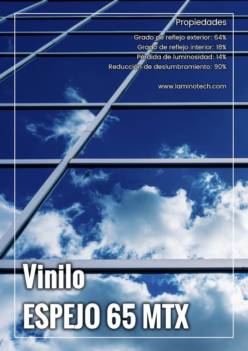 Nuestro vinilo Espejo 65 MTX es además una lámina de alta eficiencia térmica, con un alto rechazo solar del 82%. Esto se traduce en una reducción de 5 a 9 grados de la temperatura, además de ser ideal para reducir los problemas de decoloración y deslumbramiento.